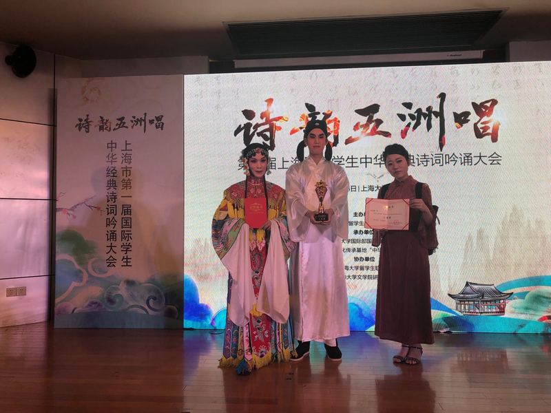 6月6日,首届上海国际学生中华经典诗词吟诵大会在上海大学举办,吸引了上海市18所高校的国际学生参与。我校国际教育学院派出了由韩国选手高东贤、老挝选手南湘和日本选手铃木依里组成的代表队参赛。