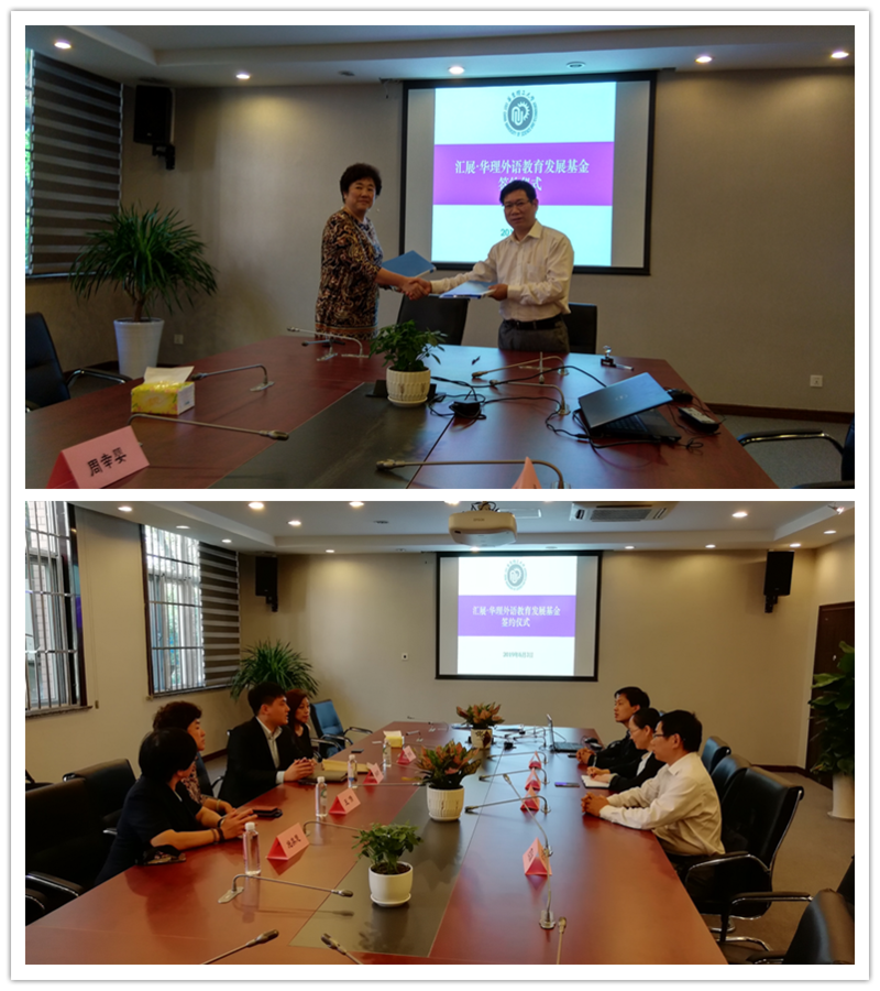 6月3日,外国语学院与上海汇展信息科技有限公司签约,由汇展公司捐赠30万元设立“汇展·华理外语教育发展基金”。上海汇展信息科技有限公司总裁王倩,总经理杨雄杰,我校外国语学院党委书记王喆、副院长张正军(主持工作)、党委副书记樊俊参加了签约仪式。仪式由樊俊主持。