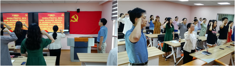会上,全体党员重温入党誓词,面对党旗庄严许下誓言。