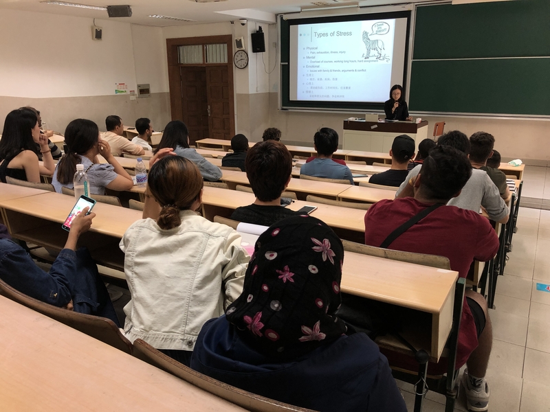 郑悦随后为留学生开展了主题为“压力管理”的全英文心理讲座,针对留学生在华留学期间可能遇到的心理问题、心理问题会造成的后果、发生心理问题应采取的举措等方面向留学生详细阐述了心理问题对于身心健康的重要性,以及学校对留学生心理压力等问题的重视和关切。