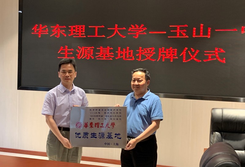 13日下午,我校本科招生宣传组冒雨来到玉山一中,与玉山一中校长李云生进行了深入会谈。李云生对招生宣传组一行人的到来表示热烈欢迎,并就玉山一中的办学特色、优生培育等情况作了介绍。吴辉和刘朝晖表示,将发挥华理优质教育教学资源优势,参与支持生源基地的教育教学改革,推荐专家教授到校讲学,为玉山一中学子的发展开拓更广阔的空间。随后,双方进行了“优质生源基地”授牌仪式。