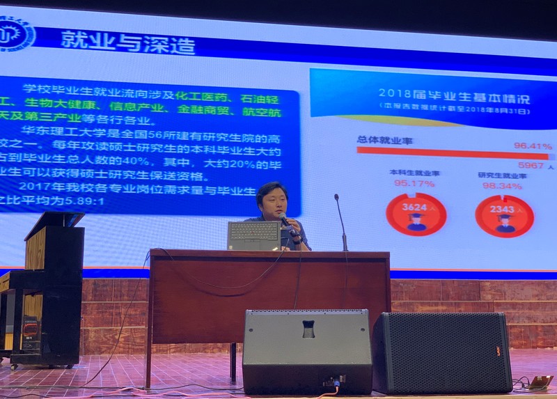 12日下午,一行人来到江西省临川第一中学。临川一中校长王昱与我校一行人进行了深入交流,吴辉、刘朝晖就华东理工大学的发展状况、人才培养等情况做了介绍,王昱向我校招生宣传组介绍了临川一中的办学和人才培养情况。在举行了“华东理工大学优质生源基地”授牌仪式后,吴辉向临川一中的同学们作了招生宣讲,就我校的校情和历史沿革、学科和专业优势,以及人才培养举措、校园生活、就业情况等进行了全方位介绍,受到同学们的热烈欢迎。