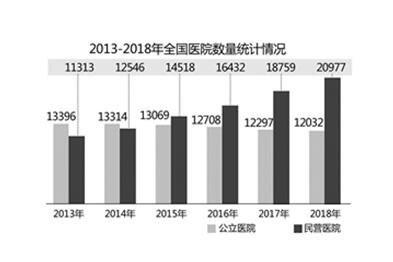 近年来,我国社会办医也取得了长足发展。公开数据显示,截至2018年底,我国社会办医机构数量已达45.9万个,占医疗机构总数的46%;社会开办的医院数量达2.1万个,占比63.5%。同时,社会办医在人员、床位、诊疗量上的占比均保持稳定增长。