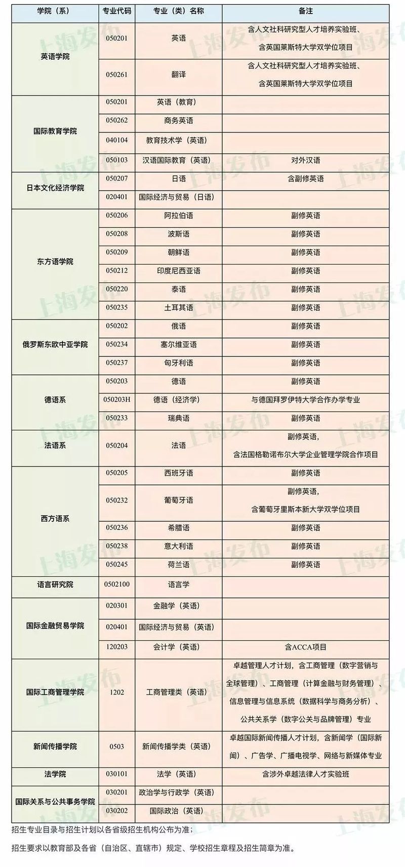 1. 外国语言文学类专业限招英语、德语、日语语种考生(其中英语专业限招英语语种,德语专业限招英语、德语语种,日语专业限招英语、日语语种),其余专业对考生所考外语语种不限。由于学校各专业均有双语(英语、汉语)教学及相关课程使用英语原版教材,请非英语语种的考生慎重报考。