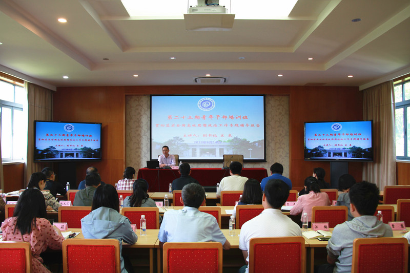 6月14日下午,第二十三期青干班学员在和平楼第二会议室进行集中学习。校党委副书记宋来和副校长钱锋受邀分别为青干班学员作专题辅导报告。报告由党委组织部常务副部长沈悦萍主持。