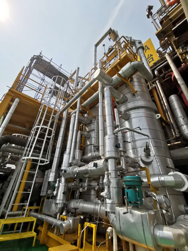 我校海洋生态与高端装备技术工程中心汪华林、杨强教授科研团队研发的“CFC形状聚结油水分离技术”,助力渤海油田平台高效作业及废水提标,处理后生产水含油量较改造前降低40%以上、平台原油产量增长30%以上,迄今已高效平稳运行近300天。近日,团队成员刘懿谦博士对平台进行了回访,得到了平台工作人员对该技术的高度认可。