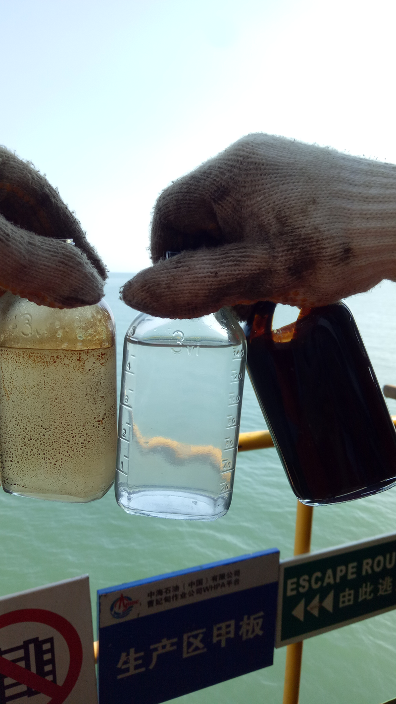 曹妃甸油田(CFD)是由中国海洋石油(CNOOC)与美国科麦奇(Kerr-McGee)石油公司合资,在渤海湾西部共同开发的大型油田,其周围为海洋捕捞区、海产品养殖区及海滨旅游区,油田作业环境敏感,操作标准要求高。平台进入生产中后期,采出液中水含量增大,大量含油生产废水的处理是困扰平台的一大难题。为此,我校科研团队以亲疏水纤维组合形态对乳液的破乳作用为主要研究方向,构建了亲油与亲水纤维以特定机械结构组合油水物理破乳分离的新方法,并据此开发了以CFC(Combined Fibers Coalescence)型高效分离器为核心的油田生产水升级处理工艺。