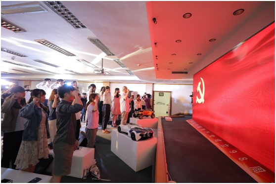 6月26日下午,在华东理工大学逸夫楼举办的艺术党课第四讲现场,大厅里展示了来自校内外党员手抄的精美入党誓词,活动现场,更有60年党龄的老教师任德呈带领党员同志们宣誓,庄严而激动人心。在课堂上,还有多辆汽车模型的展示——中国著名汽车设计师、全国劳动模范邵景峰同志应邀走进“艺术党课”,为来自设计界和华东理工大学的150余名党员、学生讲述“汽车设计与新中国70年”。