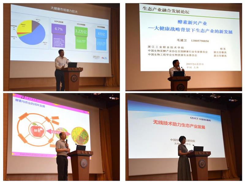 6月23日下午,由中国生物发酵产业协会酵素分会主办、华东理工大学鲁华生物技术研究所承办的“全国酵素研究中心”授牌仪式暨2019生态产业融合发展论坛(首届)在我校举行。会议由中国发酵产业协会周海龙副理事长主持,我校副校长钱锋院士、中国生物发酵产业协会理事长石维忱、工业和信息化部无线电管理局副局长陈季华、我校魏东芝教授、浙江工业职业技术学院校长毛建卫共同为“全国酵素研究中心”揭牌。中国信息通信研究院无线电研究中心主任闫丽、大连工业大学生物工程学院院长李宪臻,以及我校科研院副院长刘海峰,生物工程学院院长庄英萍、副院长赵黎明等出席会议。中国生物发酵产业标准化技术委员会酵素分会委员、全国酵素行业专家委员会委员以及相关科研单位专家和企业负责人200多人参加了此次会议。