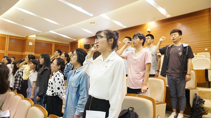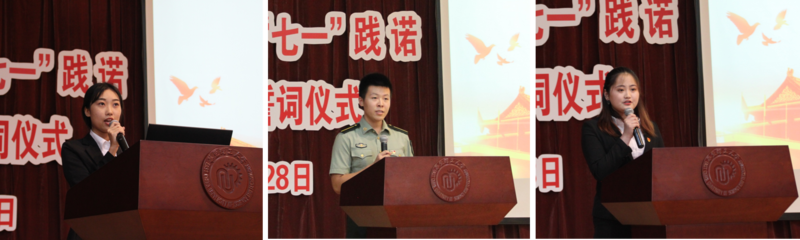 学工部副部长崔姗姗致辞。化工学院新党员徐郑策同学向全体学生党员宣读《华东理工大学学生党员“七一”承诺书》,号召新党员践行“七一”承诺:读好一本理论书籍,帮助一名困难学生,联系一位积极分子,参与一项党性锻炼,进行一次宣讲微课堂,过好一次民主生活,完成一次公开述责答辩。全体新党员在承诺书上郑重签下自己的名字。