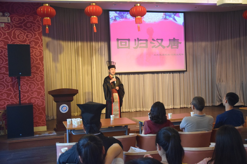 典礼伊始,毕业班7名学生身着汉服同唱《平凡之路》,拉开了活动序幕。“有服章之美谓之华,有礼仪之大谓之夏。不分秦晋无论汉唐,流传的是万古芬芳。”伴随着《衣冠上国》,汉服社的独舞和汉服展示将汉服文化中蕴藏的端庄典雅诠释得淋漓尽致。褒衣广袖,交领右衽,足衣首服,章纹配饰,每一个细节都是华夏文化的象征。