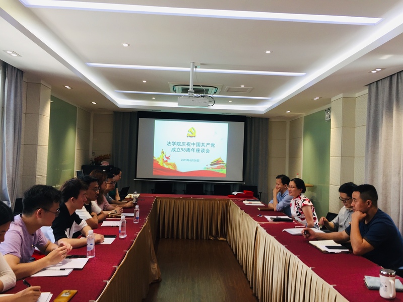 为庆祝中国共产党成立98周年,继承和发扬党的光荣传统,6月28日下午,法学院党委召开庆祝建党98周年座谈会。学院党委书记丁灏、副书记周建国、党支部书记、组织员、辅导员和法学院2018年度“两优一先”表彰获得者参加会议。座谈会由丁灏主持。