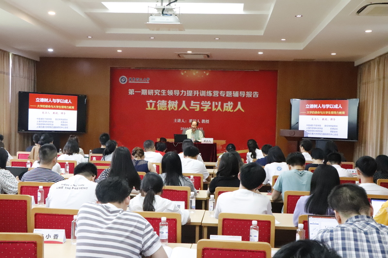 7月3日,第一期研究生领导力提升训练营专题辅导报告会在和平楼第二会议室举行,中国浦东干部学院首任常务副院长奚洁人教授为学员作了题为“立德树人与学以成人”的专题报告。报告会前,我校党委副书记宋来与奚洁人就大学生领导力教育等交流了意见。