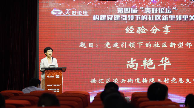 在经验分享中,周家渡街道云台一居民区“云宝贝”自组织发起人凌玉华围绕《志趣相投自组织 凝聚社区你我他》介绍了“云宝贝”群众自治组织的相关情况和工作体会;周家渡街道齐河一居民区党总支第三网格睦邻党支部书记顾东雅围绕《家庭小党校闯出睦邻自治新路径》谈了家庭小党校在构建新邻里关系方面的睦邻实践路径;徐汇区凌云街道梅陇三村党总支书记尚艳华围绕《党建引领下的社区新型邻里关系》分享了梅陇三村的工作体会;长宁区虹桥街道荣华居民区党总支书记盛弘围绕《“小小联合国”,融情大家园》以“垃圾分类”为例分享了荣华居民区工作中的经验与做法。