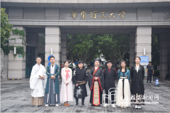 本网讯(记者 金寒草)“兰之猗猗,扬扬其香。众香拱之,幽幽其芳。”伴随着悠扬的《幽兰操》,华东理工大学徐汇校区八角亭旁的大屏幕上出现七名身着汉服华裳的年轻人,个个脸上洋溢着青春的笑容。这不是在拍戏,也不是社团搞活动——这是属于华东理工大学化学与分子工程学院七位研究生的毕业典礼。