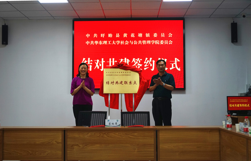 7月5日下午,社会与公共管理学院党委书记张广利带领学院教职工代表访问盱眙县黄花塘镇,在芦沟社区举行结对共建揭牌仪式,并签署合作协议。出席签约仪式的还有社会学院副院长刘晓亮、办公室主任梁晶华、工会主席俞慰刚、专业学位中心副主任黄忠怀、行政管理系教工支部书记曾莉、MPA教育中心主任张良、实验中心主任童雪红、专职组织员兼党委秘书王云娇以及盱眙县委常委、宣传部部长张晓红,县委组织部副部长、非公有制企业和社会组织工委书记沈玉华,黄花塘镇党委副书记、镇长张娟,以及我校教师代表和黄花塘镇芦沟村、瓦屋村、绿化村的3位党总支书记。