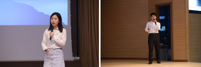 开营仪式还邀请了“挑战杯”市赛获奖团队代表、我校艺术学院研究生何宇瑶和机动学院研究生姚树磊分别进行交流分享。何宇瑶以“设计立县:基于福建松溪的设计扶贫实践与模式更新”为题,讲述了在精准扶贫的政策下,如何利用设计立县的创意为家乡建设贡献青春力量。姚树磊以“航空发动机叶片超声滚压强化技术及装备”为题,介绍了他和他的团队致力于打破国外技术壁垒,开发新型航空发动机叶片强化技术的过程。