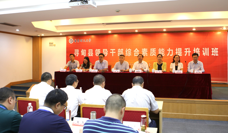 本次培训班由华东理工大学、中共寻甸回族彝族自治县委干部党员教育领导小组主办,我校继续教育学院承办,校长办公室(扶贫工作办公室)总体负责。培训为期7天,50名参训学员来自寻甸县各乡镇(街道)、特色产业园区、县直有关部门的主要领导。培训内容覆盖当前宏观经济形势与供给侧结构性改革、生态治理和环境保护、社会管理与公共服务、城乡统筹发展推进乡村振兴、环境保护与生态文明建设、区域经济转型与现代服务业发展等理论教学,以及国有骨干企业管理、现代工业园区的规划与管理、廊下现代农业园区等实践教学。