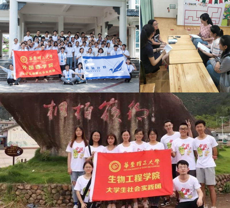 此外,各学院实践团队结合学科特色开展形式多样的公益活动。外国语学院蔚蓝计划实践团队赴云南姚安大成中学开展“用英语支教乡村”活动,同时揭牌暑期社会实践基地,建立长期服务机制。生工学院“微光课堂”实践团队再次奔赴天台仙都村,自2015年至今支教时长累计101天,开课累积737节,内容覆盖传统文化、心理健康、文学赏析、民间技艺、生物科普等多个方面,受益儿童近300人次。社会学院星愿启航实践团队在上海徐汇区、闵行区、黄浦区等地区开展“社区托幼服务模式探索,助力社区托幼一体化”实践项目,通过采访调研等形式,为社区托幼服务模式的改善和可持续发展提供合理性建议,助力上海基层服务。
