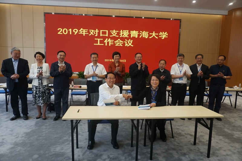 8月18日,2019年对口支援青海大学工作会议在青海大学智慧大厦学术报告厅举行。会议介绍了对口支援工作的基本情况,汇报了2018—2019年度对口支援工作的成果,签订了2019—2020年度对口支援青海大学工作协议。青海省委书记王建军,省长刘宁,副省长刘涛,省政府副秘书长王述友,省教育厅党组书记、厅长韩英,省教育厅副厅长杨发玉等省领导会见了杜慧芳等支援高校领导,并向各高校对青海高等教育的关心和支持表示感谢。