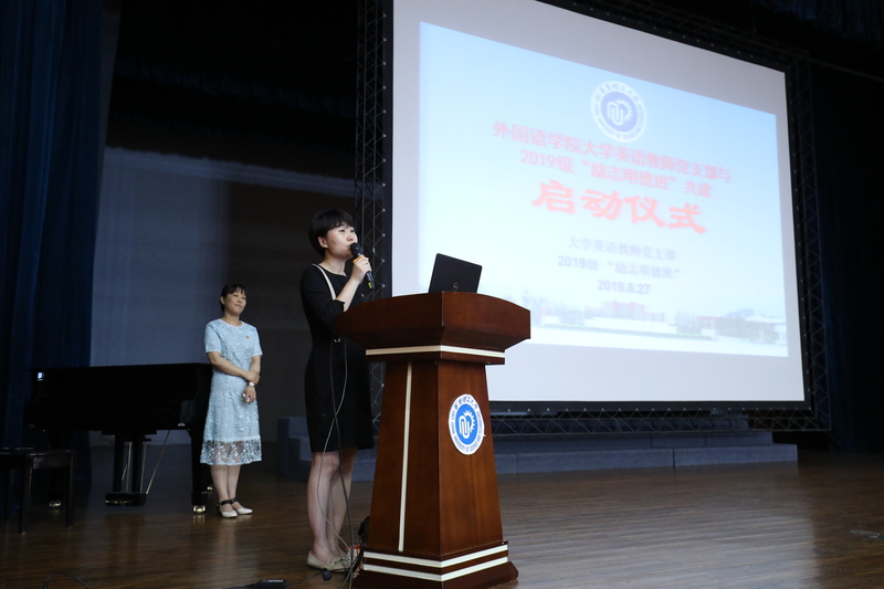 8月27日下午,外国语学院大学英语教师党支部与2019级“励志明德班”共建活动启动仪式在奉贤校区大学生活动中心剧场举行。党委学生工作部副部长崔姗姗,外国语学院党委副书记樊俊、副院长吴建伟、大学英语教师党支部15名教师党员,以及志愿者教师和160余名“励志明德班”同学一起参加了启动仪式。活动由大学英语教师党支部组织委员张郝莉主持。