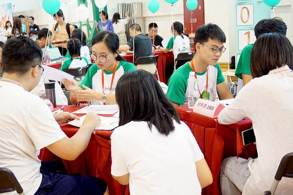 "绿色通道"除了设有缓交学费、预支勤工助学工资、礼包发放、提供勤工助学岗位咨询等服务处外,勤工助学各部门的学生还当起了志愿者,对通过"绿色通道"入学的新生热忱接待、提供学习生活信息,传递着"蓬勃接续、生生不息"的资助服务精神。