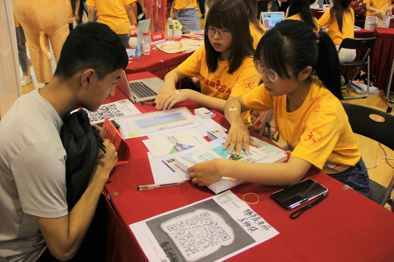 31日上午,第一批报到的同学携带录取通知书等各种证件抵达报到地点,馆内虽人头涌动却井然有序,同学们在身穿黄色“妙妙”志愿服的志愿者帮助下有序完成报到手续并领取相关材料。