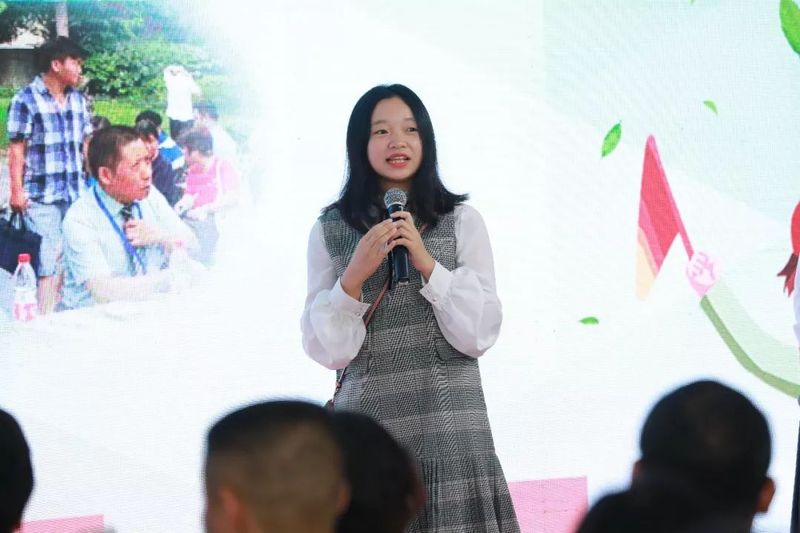 图片说明:学生熊澜静分享“爱心义务家教”帮扶项目