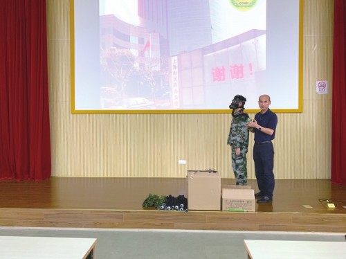 9月7日至8日,结合华东理工大学新生军训,全面推进“人防进高校”活动。其一是充分利用优质资源,开展教育培训。邀请上海市民防办特救中心主任和两名业务骨干,为华东理工大学4200余名军训新生普及人防知识。采取小班化教学的模式,以军训连为单位,利用两天时间,分别为21个连队上了21堂人防知识课。内容包括人民防空基础知识、我国周边安全形势、核生化知识、常用防护器材使用,以及校园实验室安全操作注意事项等相关内容。采取了理论与实践操作相结合方式,把民防设备带进教室,让学生们近距离接触、体验民防,了解民防设备的使用。其二是紧贴防空防灾实际,开展技能培训。针对实验室明火、实验室化学品泄漏、应急药箱使用等内容进行了培训,并安排学生进行现场体验,在实践中提升安全防灾避险的能力。让学生知道,一旦实验室内发生意外,应当如何开展自救以及相应的应急处置办法。挑选了部分新生开展防护器材训练,培训小教员,为下一步在全体军训连中开展训练做实准备工作。其三是动静结合,开展主题宣传。在华东理工大学主楼大厅人员密集处,设置人防宣传展板,开展主题宣传,吸引了大量过往师生驻足。活动邀请区有线台全程跟踪报道,并制作了一部时长10分钟的视频宣传片,在区相关媒体播放,全面展示了大学生的人防宣传教育及技能操作实况,为以后全面开展“人防进高校”活动总结经验、夯实根基。