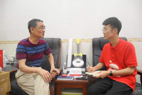 图为团队成员在采访社区达人杨启时。 黄秦勤 摄