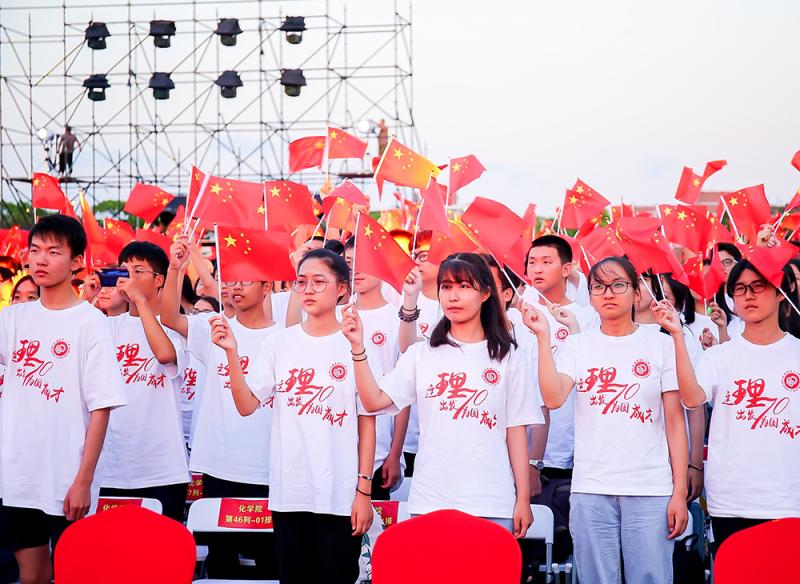 夜空中,伴随着再度飘扬的五星红旗,近8000名新生也挥动起手中的小国旗,共唱起《我和我的祖国》,用歌声礼赞新中国成立70周年,迎新晚会在同学们意犹未尽的赞叹中结束。