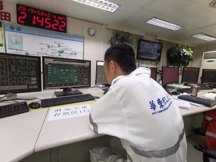 形成调研报告、项目建议书10 余份,形成中试方案、技术方案、调试方案30 余份,发表SCI 论文2篇,累计服务时长超过4000 小时……在过去的一年中,华东理工大学机械与动力工程学院一群“自找苦吃”的年轻人,在导师杨强的带领下,利用中秋、国庆、寒暑假等节假日赴南海海域和渤海海域的10余个重点油气田平台开展技术服务社会实践活动,将实验室技术应用到产业实际,以自主研发CFC型紧凑高效除油技术装备解决海上油气田平台生产水处理难题,助力中国“加快建设海洋强国”战略的实施。