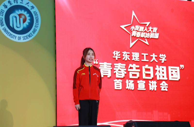 “新时代中国青年要担当时代责任。为华理而奋斗,为强国而拼搏。”体育学院2019级研究生、中国大学生武术锦标赛女子甲组其他拳术第一名邱竞阅,带来了华理体育健儿刻苦训练、获得荣誉与投身实践、服务校园的故事。她表示,“为校争光、为国争光”是华理体育健儿共同的信念。大学生运动员要以强烈的责任感和使命感,把自己的小我融入祖国的大我,拼搏奉献,爱国强国。