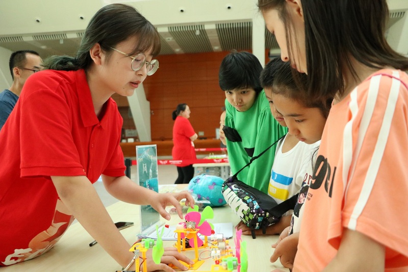 科普活动不能指望通过一次两次活动就能够带来直接效益,更多的是一种思想理念的传播、观念的辐射,需要进行长期的普及教育。实践团队在进行科普宣讲的同时,积极挖掘当地对科普兴趣高、沟通能力强、活跃度高的青少年,将其培养为科普志愿者。经过团队的志愿者培训和科普内容教授,小小科普志愿者们带着科学的火种走进社区、科技馆,为更多市民讲解科学原理。在与克拉玛依市科技馆的科普宣教合作中,就有多位少年志愿者承担科普项目的讲解活动,引起了良好的反响。另外E-Lab智慧科普服务项目现已加入“云支教”平台,将继续通过互联网开展并完善科普活动,让科普“零距离”。