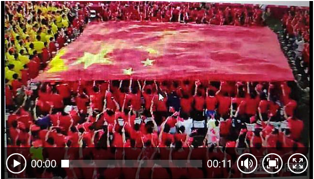 一面巨幅五星红旗在大家手中接力传递,传递着对祖国的深情,也传递着爱国奋斗、报效祖国的澎湃激情。
