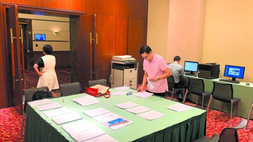 除了方案创新,唐浩成和部门团队也一起努力把服务提升落到实处。垂直对接方面,他们对接了多家供应商;水平对接相对复杂,他们要对接好不同的交通和安保部门,多次沟通方案细节,统筹规划不同时间节点的交通方案,制定了一整套从七个媒体酒店往返新闻中心的各趟班车的相关事务。