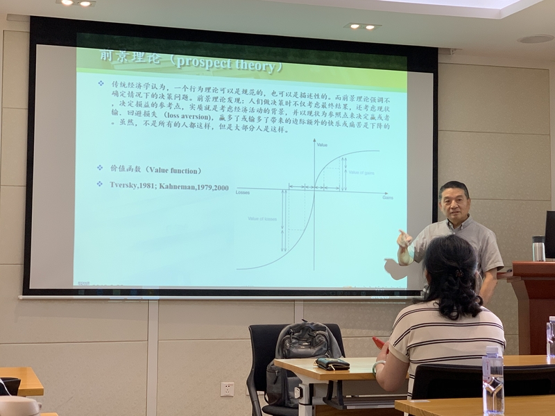 丁钢介绍了1978年诺贝尔经济学奖得主西蒙提出的“有限理性”概念,2002年诺贝尔经济学奖获得者、美国普林斯顿大学教授丹尼尔·卡尼曼与美国斯坦福大学教授阿莫斯·特沃斯基提出的“前景理论”以及2017年诺贝尔经济学奖获得者、芝加哥大学教授理查德·塞勒在有限理性方面发展出的“心理账户”理论。从中,他引出了行为经济学的相关概念,继而根据真实案例使大家对这些专业概念有了更清晰的认识。