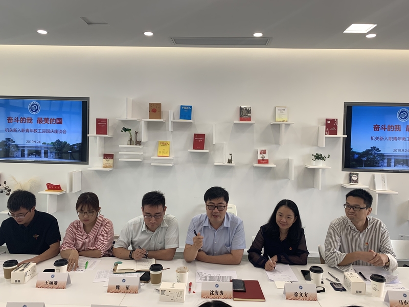 新教工谈理想、谈工作,纷纷表示,机关起点高、任务重,工作政治性强、严谨度高,一定要保持奋斗底色,做好服务工作,不忘立德初心,勇担树人使命,以优异的成绩庆祝中华人民共和国成立70周年,为学校“双一流”建设贡献力量。