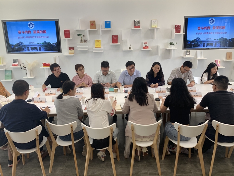 新教工谈理想、谈工作,纷纷表示,机关起点高、任务重,工作政治性强、严谨度高,一定要保持奋斗底色,做好服务工作,不忘立德初心,勇担树人使命,以优异的成绩庆祝中华人民共和国成立70周年,为学校“双一流”建设贡献力量。