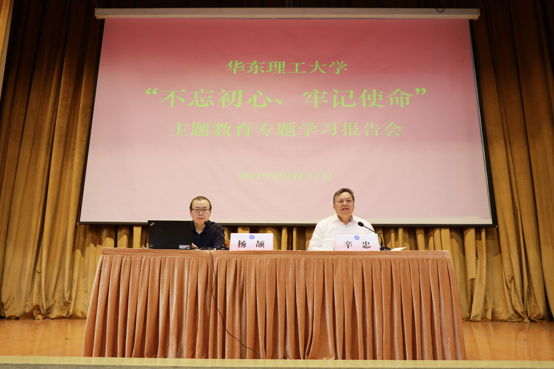 为扎实推进“不忘初心、牢记使命”主题教育深入进行,按照学校主题教育学习工作安排,9月27日下午,学校在逸夫楼报告厅举办第四场专题学习报告会,校领导及全体处级以上干部共同聆听了关于一流大学、一流学科建设的形势与任务的主题报告,并于会后进行了分组研讨。教育部第六巡回指导组到校指导。我校副校长辛忠主持了当天的报告会。