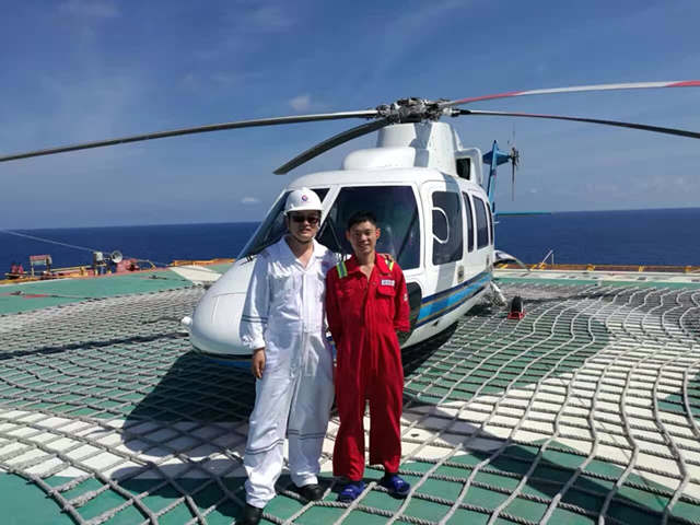 在海上平台做技术服务,短则一周,长则一个月。这些尚在象牙塔的“90后”学子,要与中海油工作人员一起同吃、同住。平台远离陆地,网络信号不好或者没有信号,工作之余,看书、健身、观赏日出日落都成了他们的娱乐项目。