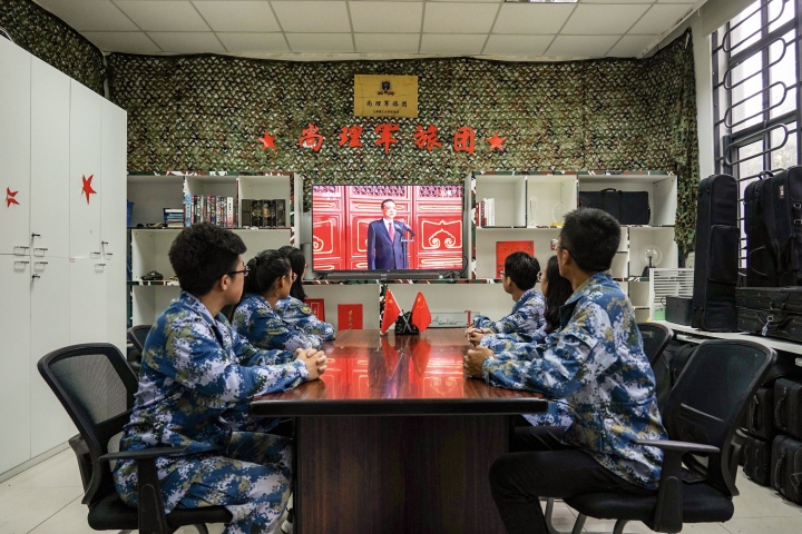 全校400多名师生、少数民族预科生、退役军人学生,与校党委书记姜锋一起,观看总书记讲话、阅兵式与群众游行。师生们自发高唱国歌,为祖国喝彩鼓掌。