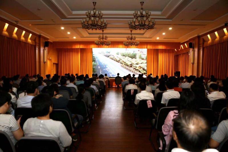 今天上午,上海各行各业收看阅兵式。复旦大学、上海交通大学、华东师范大学、华东理工大学、上海外国语大学等高校均进行了升旗仪式,同庆新中国成立70周年。