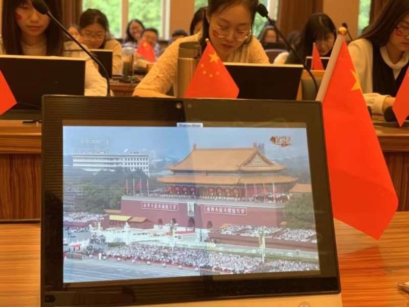 华东师范大学师生一同观看庆祝大会、阅兵仪式