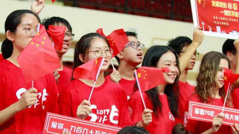 10月1日,上海外国语大学师生用多种形式观看庆祝中华人民共和国成立70周年大会。为祖国送上最美的祝愿,愿祖国繁荣富强,盛世辉煌!