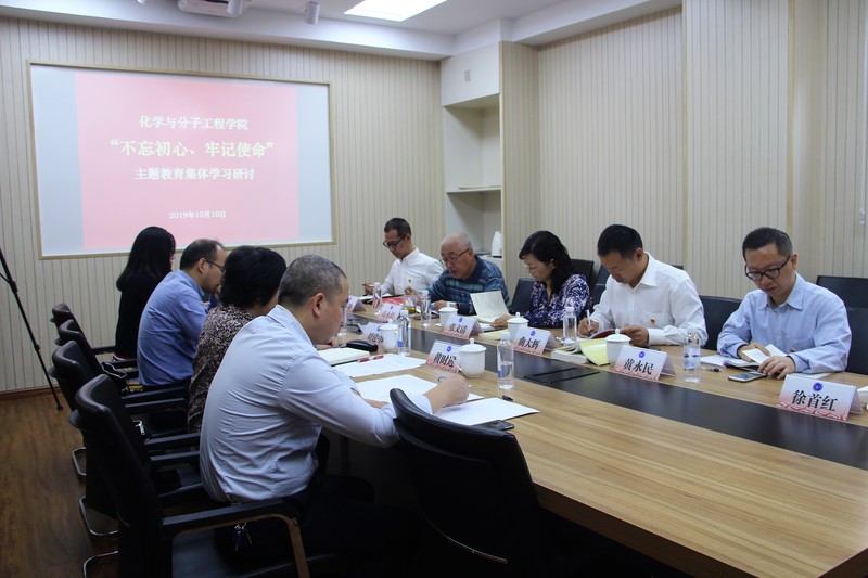 10月10日上午,化学与分子工程学院党委在实验三楼137会议室举行“不忘初心、牢记使命”主题教育集体学习研讨,化学学院全体党政班子成员参加。教育部第六巡回指导组副组长刘建中、组员米华全列席会议。