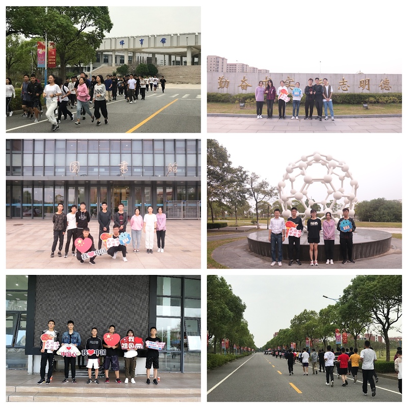 项延训在晨跑活动开始前勉励学生:强健的体魄是一切学习和生活的基础,希望大家要加强体育锻炼,通过晨跑活动让自己保持清醒的头脑,从而开启一天的高效学习生活,达到强身健体的目的。简短的晨跑启动仪式后,近150名学生在老师的带领下,从体育馆出发开启了校园晨跑,途经南正门、C60分子模型、图文信息中心,最后到达晨跑终点一食堂。本次活动在校园各标志性建筑均设立了打卡点,大家手持标语合影,表达对祖国和学校的热爱之情。