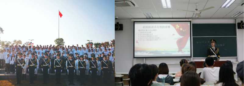 10月1日,化工学院退伍士兵张正雄和国旗护卫队的战友们一起参加了学校的升旗仪式,并观看新中国成立70周年大阅兵。阅兵式上受阅官兵的飒爽英姿体现了我军的威武形象,先进的武器装备则展现出的祖国的强盛,他为人民军队的强大感到自豪,也为自己曾是一名军人而感到骄傲。退伍大学生积极发挥先锋模范作用,联合轻化171班举办“我和我的祖国”主题团日活动,校国旗护卫队执行队长、化工174班退伍士兵龚湛钧分享了他与祖国的故事,讲述了自己服役从兵的艰苦奋斗的历程,鼓舞同学以奋斗献礼伟大祖国。