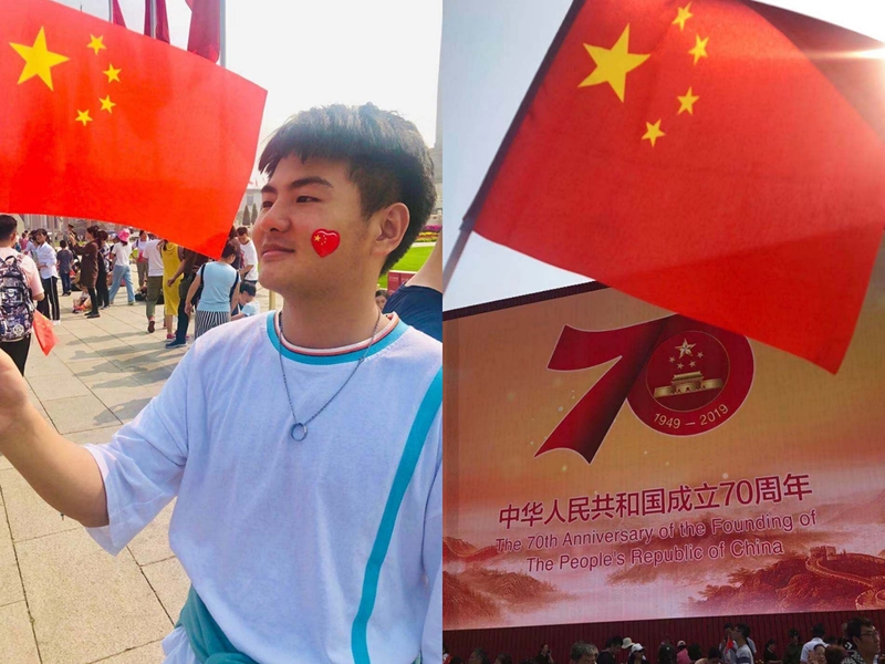 10月2日,化工学院李佳诺来到天安门广场,庆祝中华人民共和国成立70周年阅兵式和群众游行的热烈气氛还在延续,鲜艳的五星红旗在空中飘扬,人们脸上洋溢着幸福与骄傲的笑容。作为一名新时代青年,他心潮澎湃万分,喜悦之情溢于言表,共同祝愿伟大祖国生日快乐。