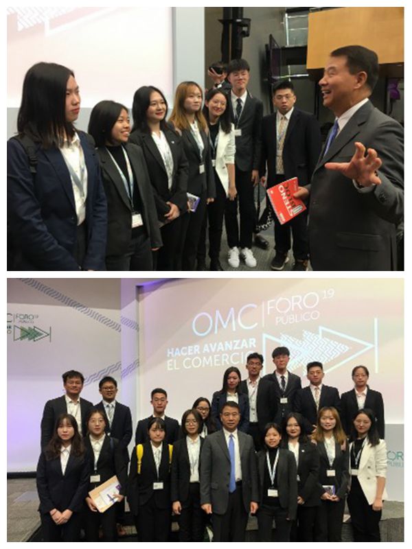 WTO公共论坛期间,中国籍首位WTO副总干事易小准(商务部原副部长)欢迎前来参加论坛的华东理工大学学生代表团,向同学们介绍了机构的工作,并祝同学们在论坛期间收获丰富的国际贸易知识。会议期间,WTO官方中英文微博、推特等特别报道了我校代表团的与会情况。